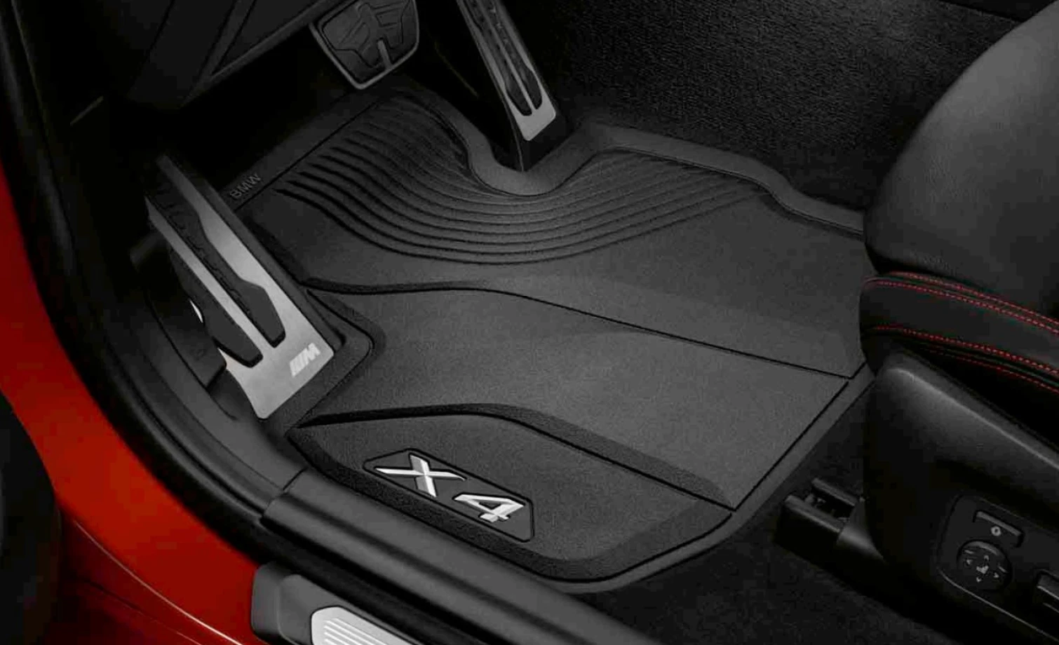 Ідеально відповідають розміру салону зносостійкі килимки BMW. Підходять для будь-якої погоди з піднятим краєм та елегантним дизайном захищають салон від вологи та бруду. Завдяки чорному забарвленню та напису X4 з нержавіючої сталі вони ідеально вписуються в інтер’єр. Переваги всепогодних килимків BMW (спереду): Привабливий дизайн, який ідеально підходить до інтерєру Напис X4 з нержавіючої сталі підкреслює спортивний вигляд. Ідеально сидить, міцний і легко чиститься. На основі надійна застібка за допомогою елементів Velcro. Збереження цінності та цілісності салону автомобіля. Додаткова шумоізоляція салону. Обсяг поставки: Набір передніх килимків з 2 частин. Поради щодо безпеки: Завжди видаляйте всі килимки або інші предмети з підлоги автомобіля, перш ніж укладати килимки. Після кожного прибирання переконайтеся, що килимки належним чином прикріплені, щоб вони не могли ковзати під час руху. Завжди використовуйте накладки на липучках / поворотні замки, що додаються. Якщо в автомобілі вже є пластини/поворотні застібки, будь ласка, замініть їх тими, що входять до комплекту!