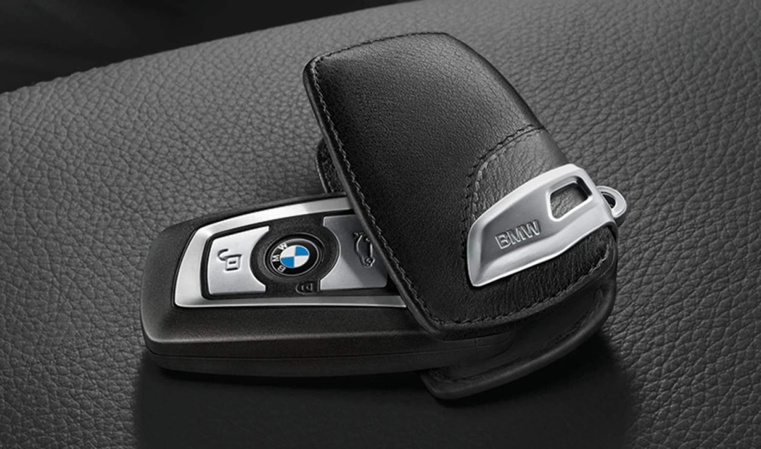 Шкіряний чохол BMW для ключів зі сталевим затиском, чорний
